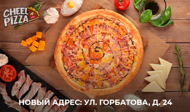 • Пиццерия «Cheel Pizza» находится по адресу: г. Брянск, Советский район, ул. Горбатова, д. 24 (вход со стороны аптеки «Апрель» и «Хмельной мили»)