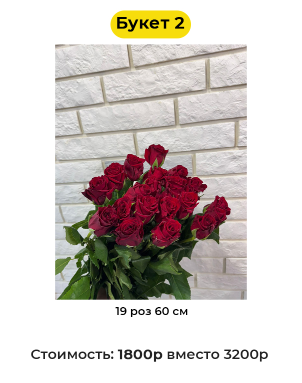 Букет 2 «19 роз 60 см» - 1800 руб. вместо 3200 руб. (Купон за 219 руб.)