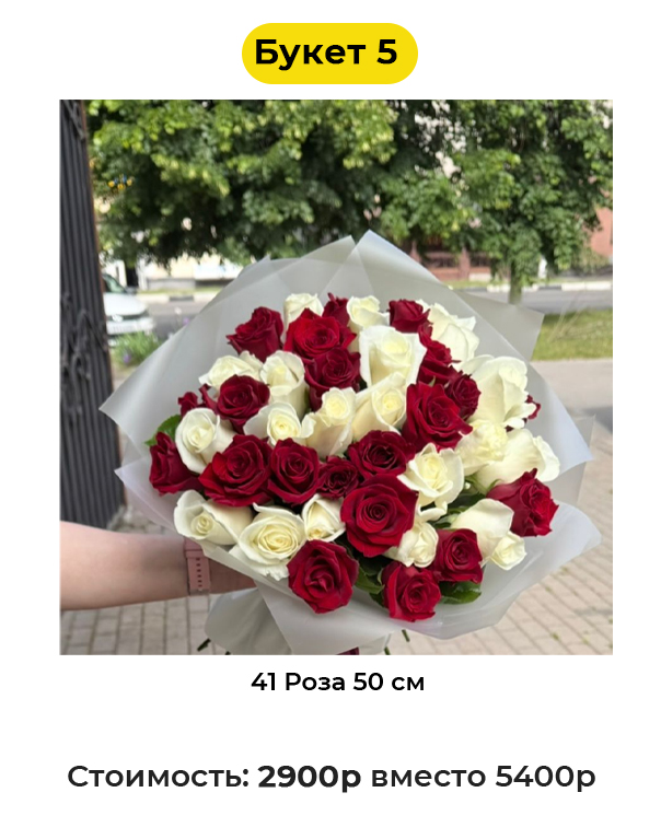 Букет 5 «41 Роза 50 см» - 2900 руб. вместо 5400 руб. (Купон за 459 руб.)