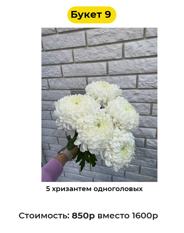 Букет 9 «5 хризантем одноголовых» - 850 руб. вместо 1600 руб. (Купон за 119 руб.)