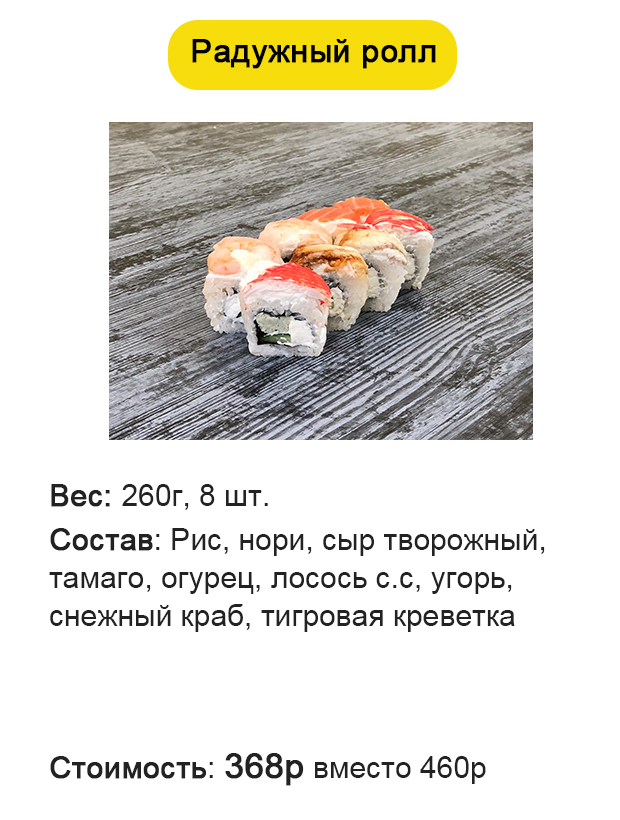 • Радужный ролл, 260г – 368 руб. вместо 460 руб.