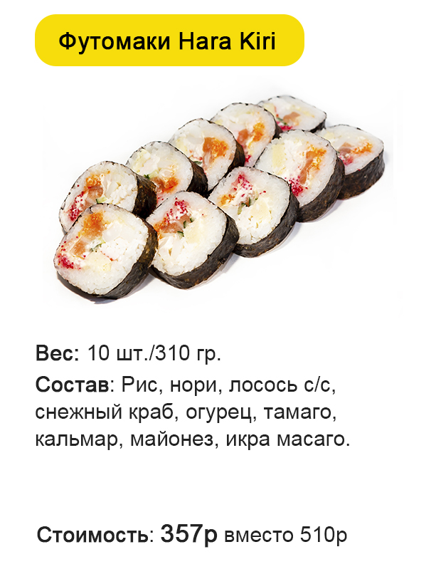 • Стоимость для вас - 297 руб. вместо 425 руб.Футомаки Hara Kiri