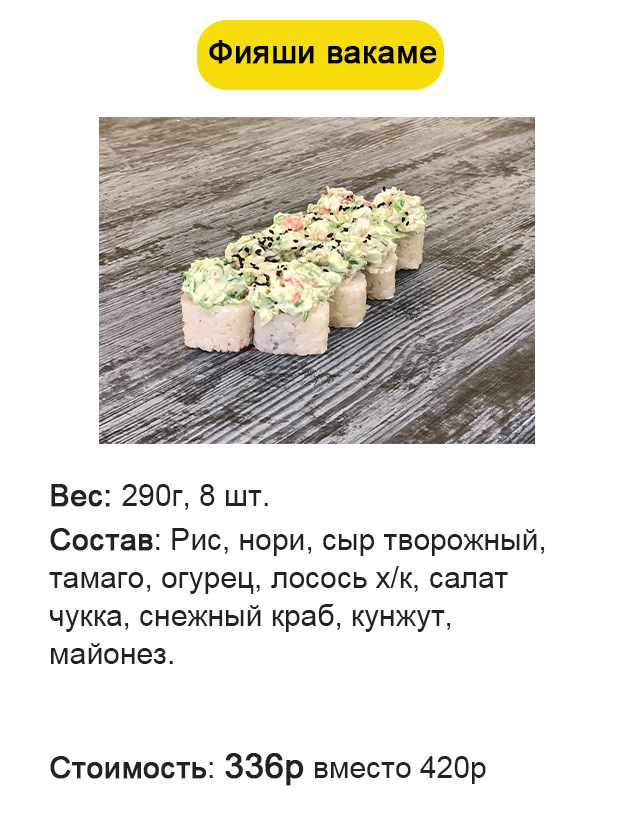 • Фияши вакаме, 290г – 336 руб. вместо 420 руб.